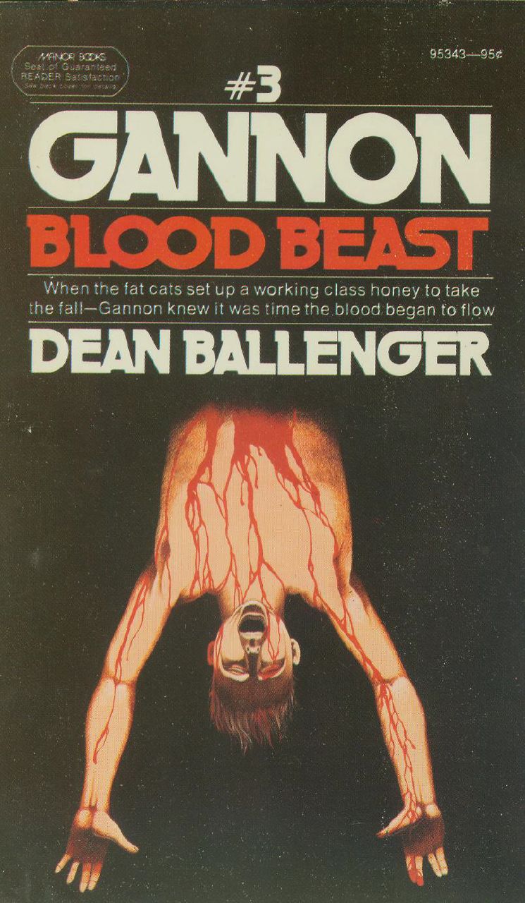 Yes, friends, we are back in the crazed world of the Gannon series by Dean Ballenger, a man whose narrative style and syntax are so outrageous that he can even use nouns as verbs. Sadly this was the last of the series (so technically it could be considered a trilogy, I guess), but it’s a hell of a way to go – despite the fact that Blood Beast comes off like a clone of its two predecessors, it’s just as wild, violent, and mean. (The title, by the way, comes from Gannon, who refers to himself as a “blood beast.”)