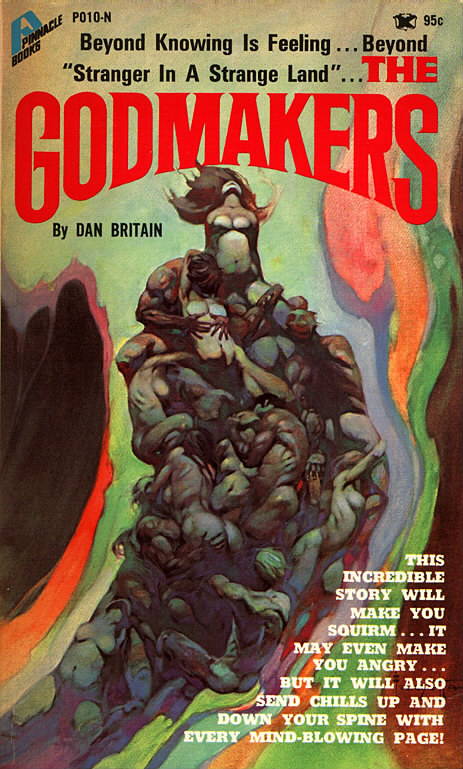 Maybe the fact that the novel even caused me to think about such things is a sign of its success, that Pendleton was at least getting me to think about and question his sentiments. (The novel also promotes a healthy "question everything" attitude.) However I still feel a much better story lurked within Pendleton’s concept. Less semantics, less exposition, and a bit more understandable action would’ve made a big difference. As it is, though, I appreciated The Godmakers for its ideas and its psychedelic, sex-as-sacrament mindset.