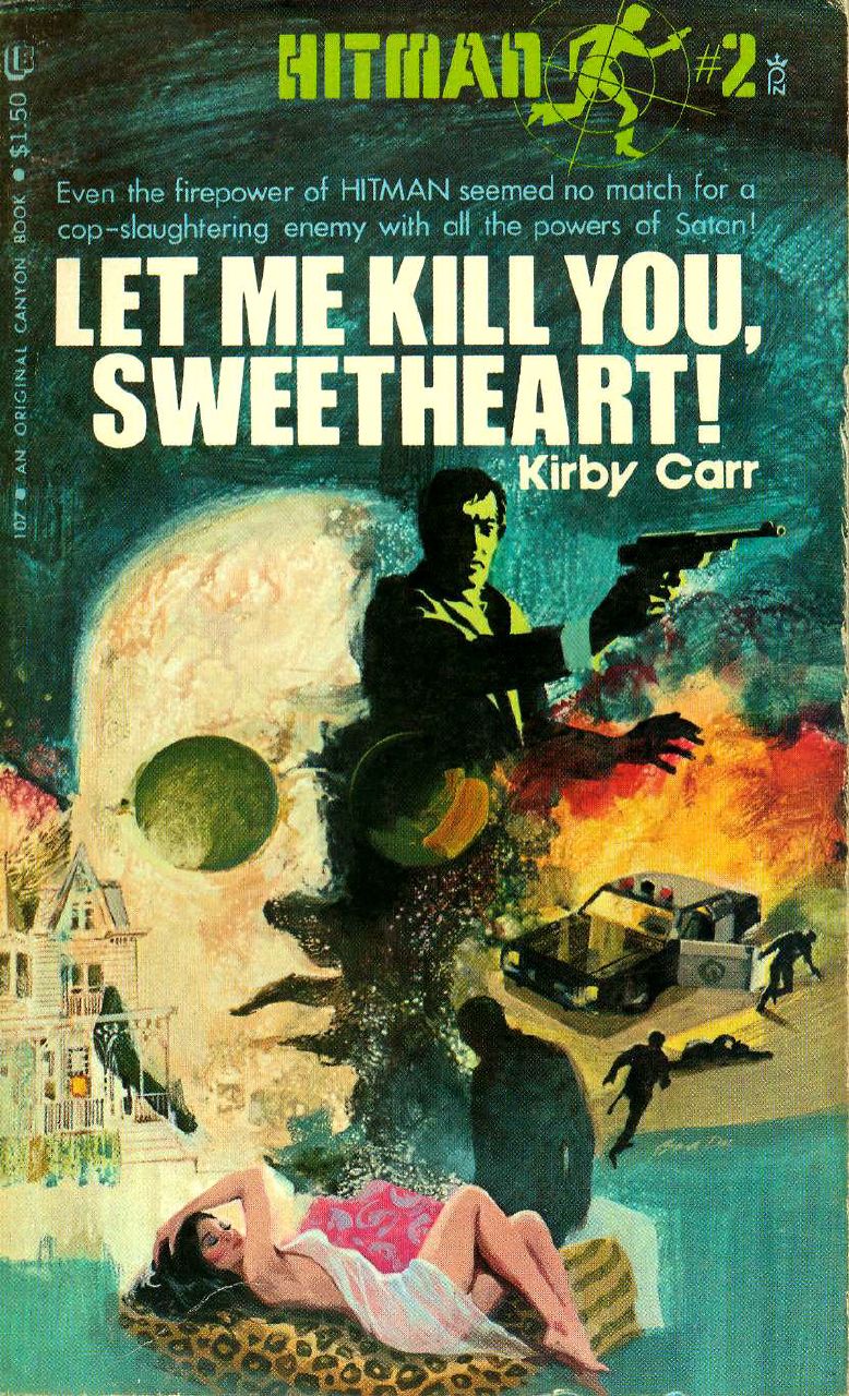 Mike Hitman Ross once again dons his “black nylon suit” and “cowl with eye slits” and prowls the streets of Los Angeles in the second entry of this obscure series. Whereas the first volume uneasily traded between goofy humor and lurid sleaze, Let Me Kill You, Sweetheart! has a firmer grip on its tone, and comes off like a horror-tinged installment of say The Sharpshooter or The Marksman, with less focus on the goofy humor and more on the violence and sleaze.