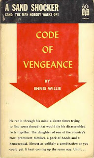 So as you can see, there is nothing very explicit here. It’s a wonder really why Willie published through such a smalltime imprint with such limited distribution; racier stuff was published by Gold Medal. But that’s how it was, and now the Sand novels are exceedingly scarce and overpriced, though Ramble House has reprinted a few of them in two recent anthologies, Sand’s War and Sand’s Game (neither of which include Code Of Vengeance, though). But you certainly get the feeling that these novels could’ve gotten more readers if they’d only been a little longer and had a better publisher.