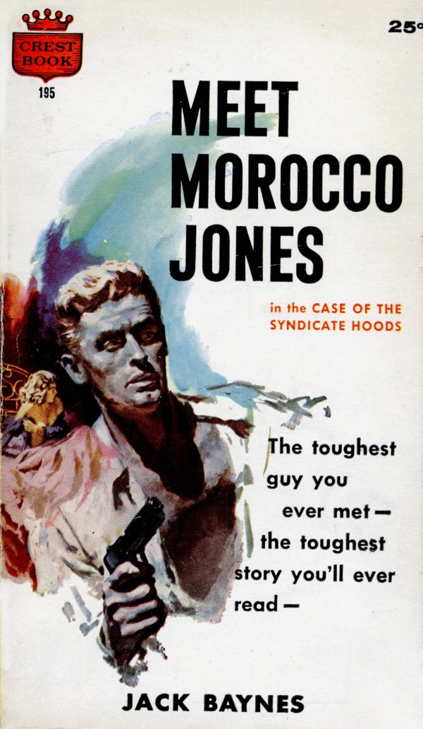 Starting off a four-volume series, Meet Morocco Jones is like a men’s adventure series ten years early. My guess is Fawcett wanted to tap in on the success of Mickey Spillane’s Mike Hammer books, but instead series protagonist Morocco Jones, while nominally a private investigator, comes off more like the sort of hero you’d encounter in the men’s adventure paperbacks of the ‘70s and ‘80s. The book (and series) is even written in third-person, unlike the first-person of the Hammer novels.